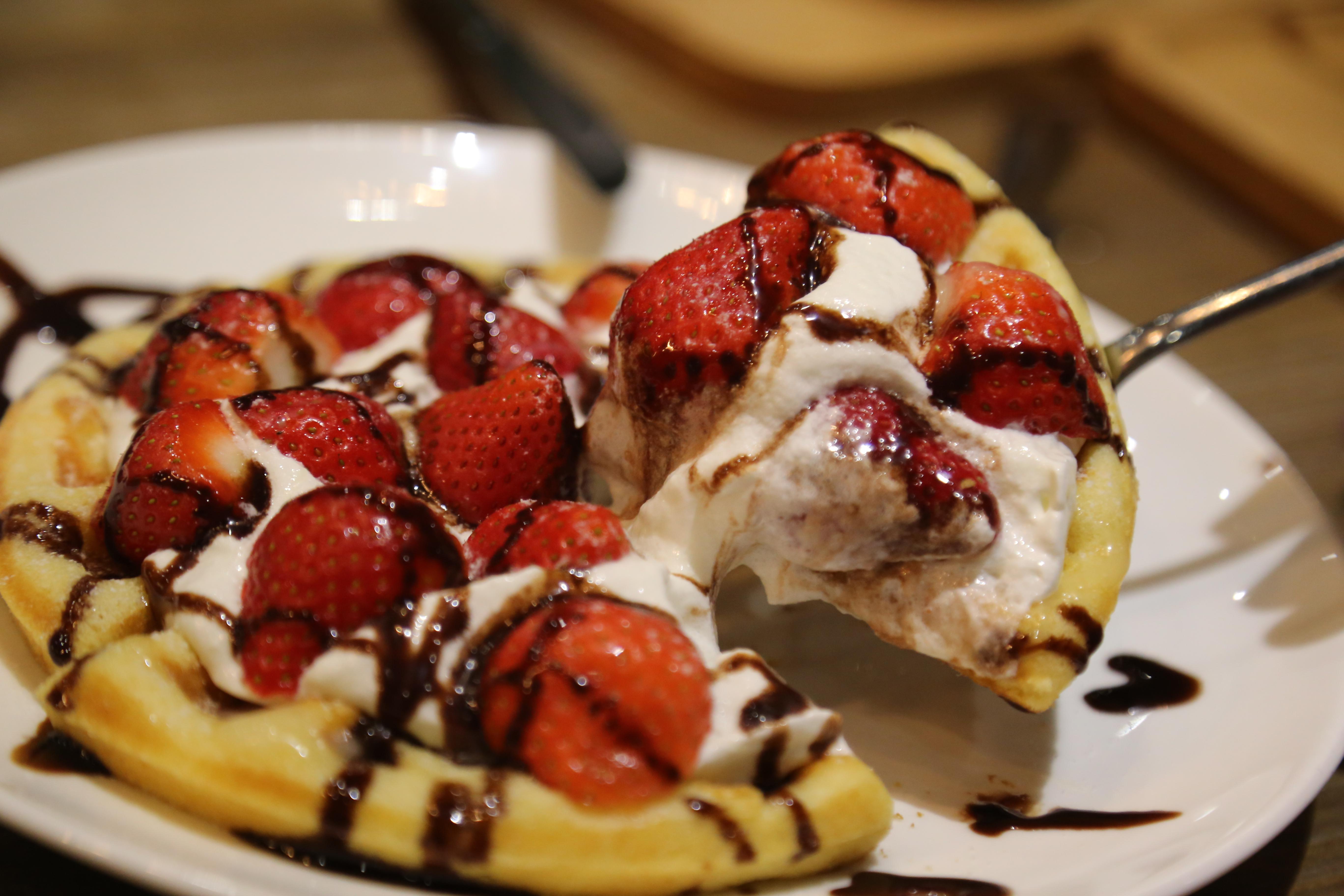 『鲜果华夫饼』 芒果/草莓 蜜罐的招牌,绝对的超人气甜品 分量足足滴 !!