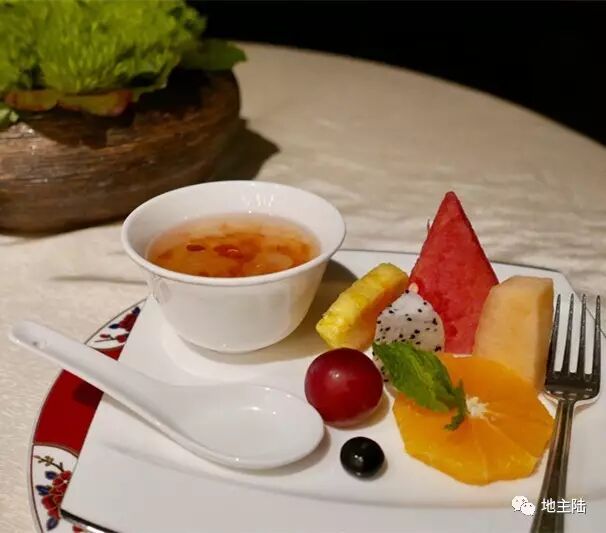 冰糖炖桃胶天山莲子滋味清新,而且是暖的。夏季酒店的空调温度低,饭后一小盏温热甜羹护住肠胃,贴心