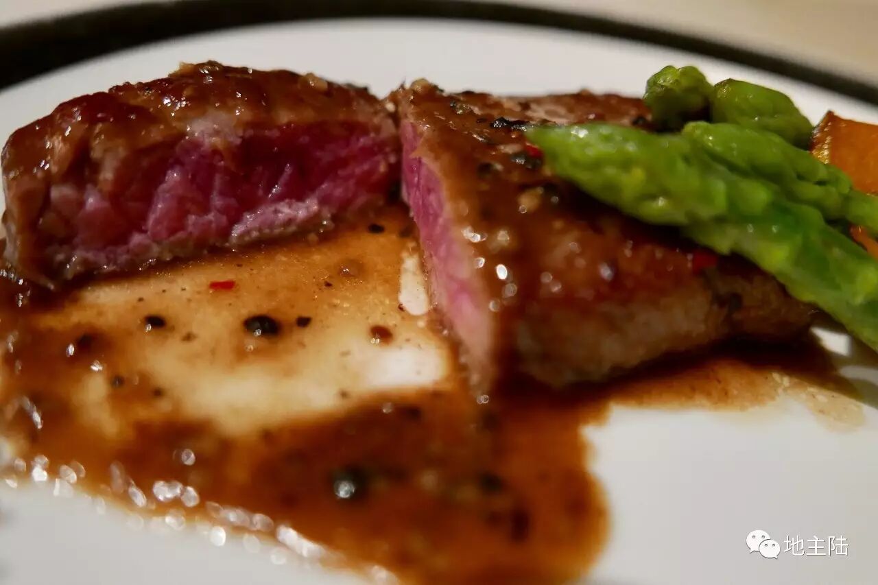 请原谅我把这道澳洲牛柳拍丑了,一是法餐厅的灯光都偏暗,二是这顿饭我是用手机拍的,因为实在不想在一个法餐厅里端着相机边拍边吃、还要发出快门声。我也想过问酒店要官方图,但觉得就不够真实了。好处是,如果你去吃这个牛柳,你就会发现你肯定比我拍得好看,开不开心?