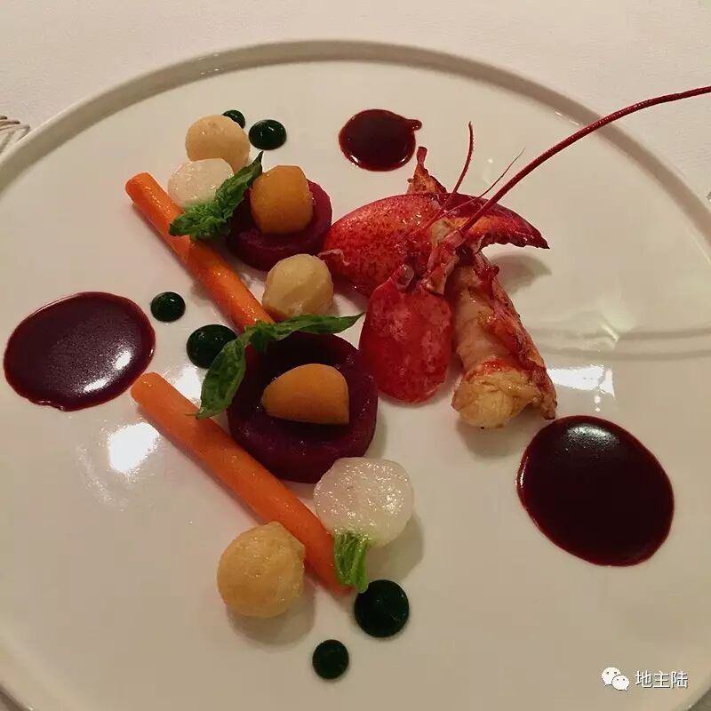 焗波士顿活龙虾配甜菜头