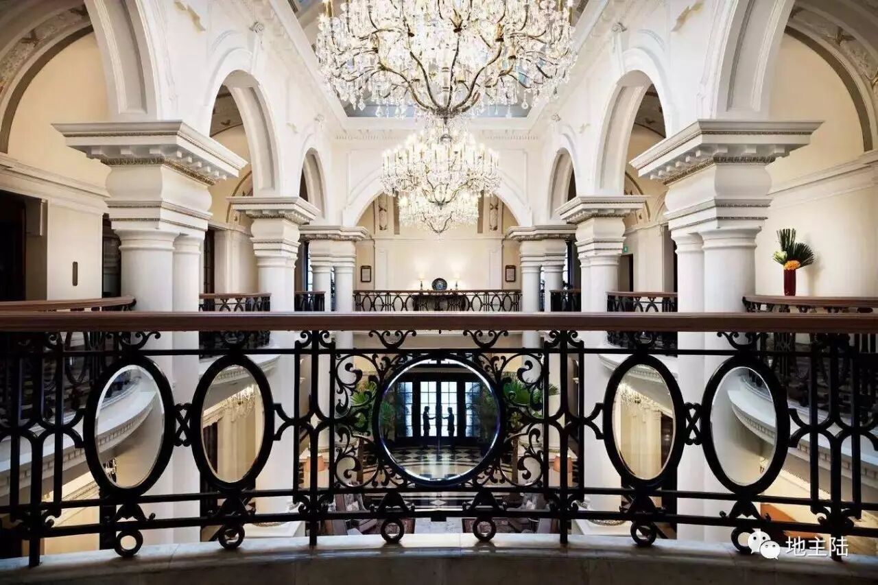 进入华尔道夫酒店的最佳方式是走外滩的大门,这一翼是飞向旧时代的翅膀。微笑的门僮拉开中山东一路2号廊檐下厚重的大门,一个优雅的世界扑面而来。年迈却依然闪光的柚木地板、大理石地面上细小的风化孔洞、围绕着高挑屋顶的石膏线复杂华丽。。。每一个细节都可以看到这座建筑的风华绝代