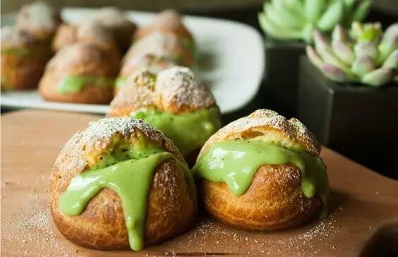 裹着抹茶巧克力的双重抹茶泡芙,太爽了。抹茶控会疯掉~