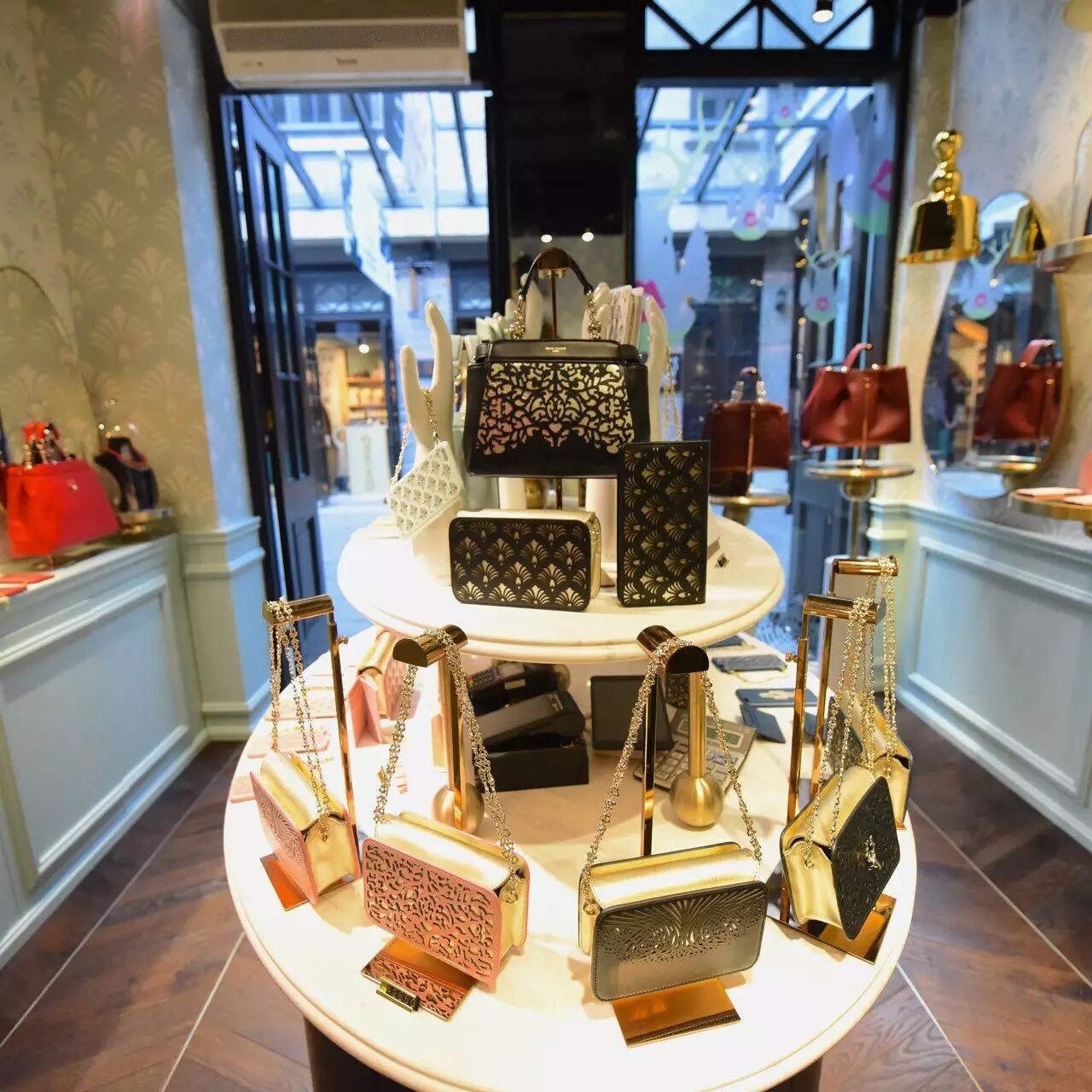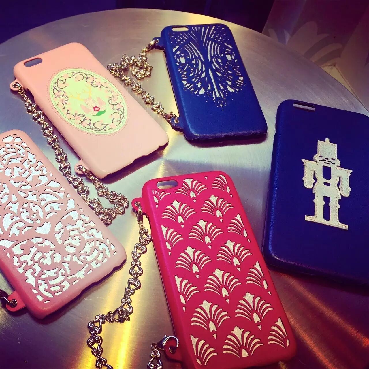 ▶︎ 第一位勇闯巴黎Lafayette老佛爷百货的华人设计师童文威的作品,之前只有在巴黎、伦敦才有机会买到的美物,终于回归到上海啦。将经典的东方元素镂空花纹与皮质结合,古典美与新时髦结合。俞菱最爱各种小牛皮手机壳,380元是没有链条的,金属链条完全由首饰工艺开发,加上链条480元。