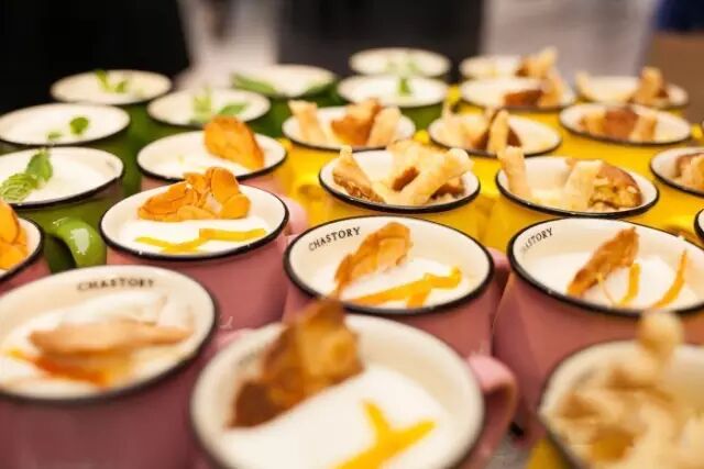 抹茶雪顶蛋挞十分惊喜噢,铺满了层层叠叠的抹茶慕斯,上桌了要赶紧拍赶紧吃,不然一会儿就要塌下去了。层次分明的它是冰与火的交融,浓厚的抹茶香和奶味四溢的冰淇淋融进了蛋挞酥皮,如果你是甜品爱好者,那就千万不要错过啦!