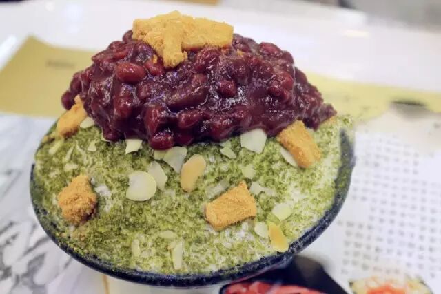 如果你是夏天来吃韩国雪花冰,那最推荐你的除了芒果,就是这款抹茶雪花啦!抹茶本来就是属于夏天的颜色,看到它上桌的一瞬间就感觉温度低了八个度。这家的雪花冰十分惊艳,磨得非常非常细,入口即化还有浓浓的奶香味,绿茶粉和红豆配在一起,简直就是绝配噢!