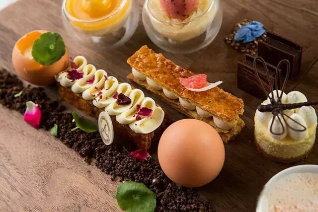 圣品琼花是另一套性价比超高的下午茶组合,撒着新鲜花瓣,充满艺术感的摆盘在“颜值”上也不示弱,让人从视觉满足到味觉!抹茶夹心蛋糕,外层吃起来会有种小时候吃老蛋糕的熟悉感觉,里面的抹茶味奶油夹心清甜细腻,组合还搭配带有恬淡茶香的乌龙茶冰淇淋,和甘醇浓香的玫瑰乌龙茶冻,可爱的粉色更添一份“少女心”。