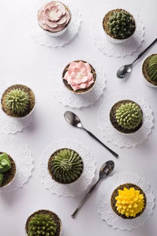 这家可是魔都首创多肉植物盆栽蛋糕品牌,多肉盆栽Cupcakes外观和植物版一模一样!选用进口ButterCream赋予它湿软、细滑的口感,澳洲专业饼房的配方基础上降低了许多糖份,微甜而清雅。绿色植物造型部分选用日本宇治抹茶,口感香醇浓郁,每一个裱花都是烘焙师用心Handmade,当下是颇受欢迎的创意森系蛋糕。