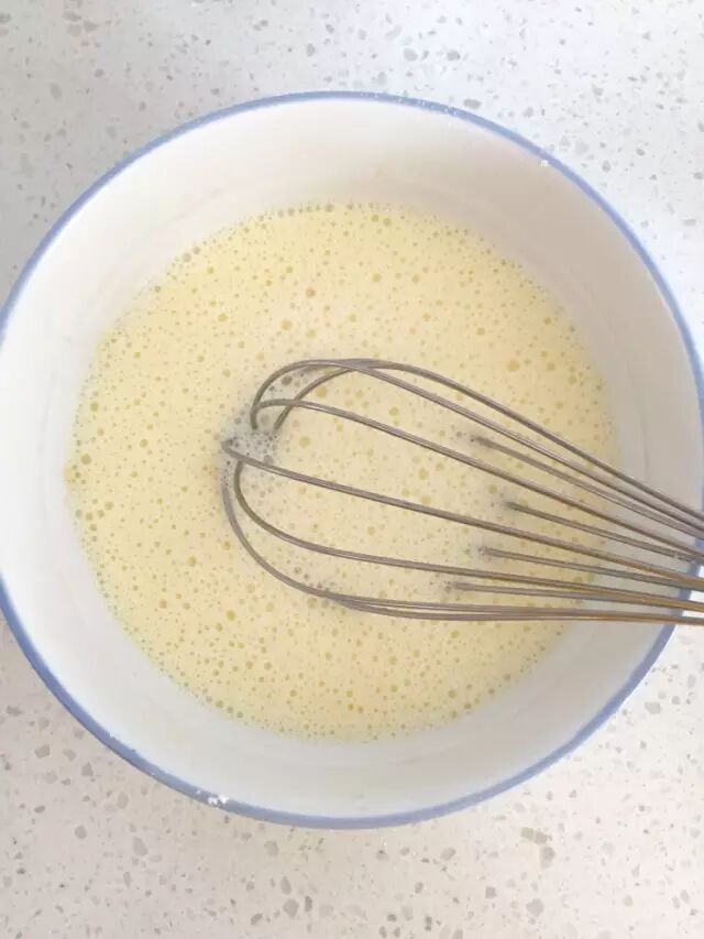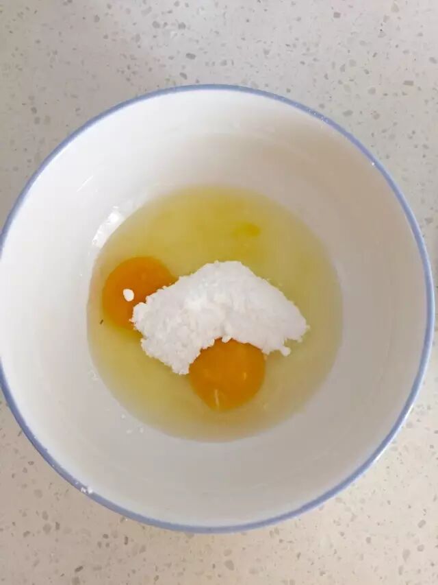 1.先把鸡蛋打入碗里,后加入糖粉,并用打蛋器搅拌均匀。