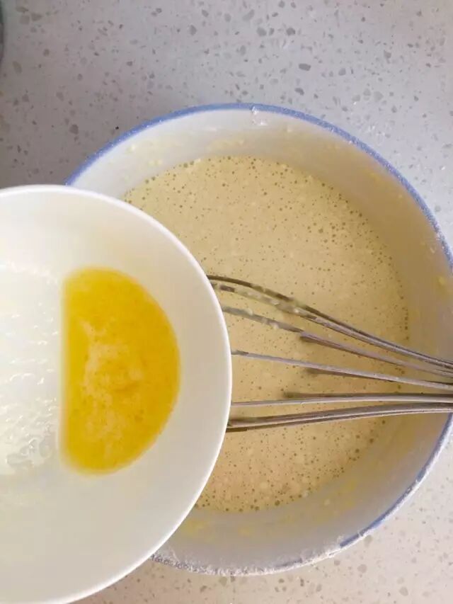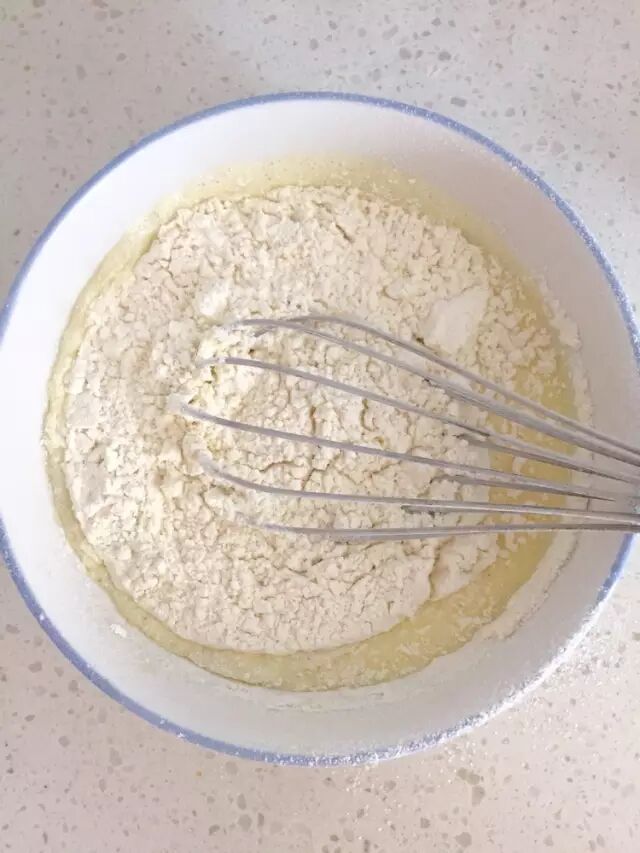 4.黄油隔水加热后加入。拌匀之后过一下筛。然后放进冰箱冷藏半个小时。