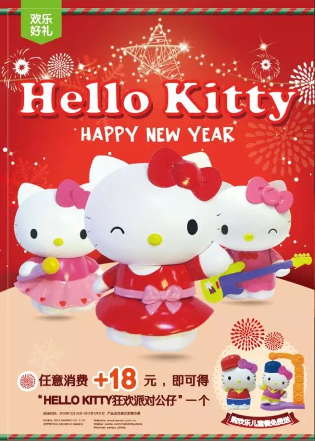 任意消费+18元,即可得“Hello Kitty狂欢派对公仔”一个