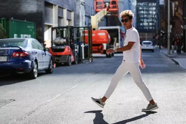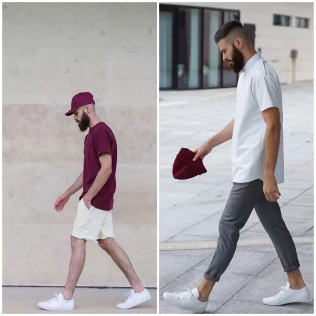 摘下帽子,换上长裤依旧是不可挑剔的鞋子选择: