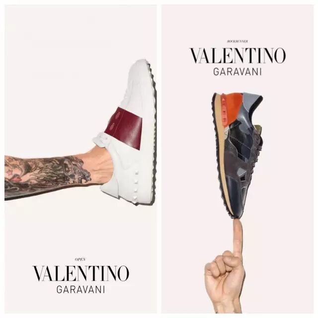 虽说Valentino比起别的奢侈品牌之外,要年轻许多,上图的两张2016秋冬配饰广告就是由美国著名的时尚摄影师Terry Richardson拍摄。花臂所触碰到的鞋子都有着Valentino带火的铆钉元素。