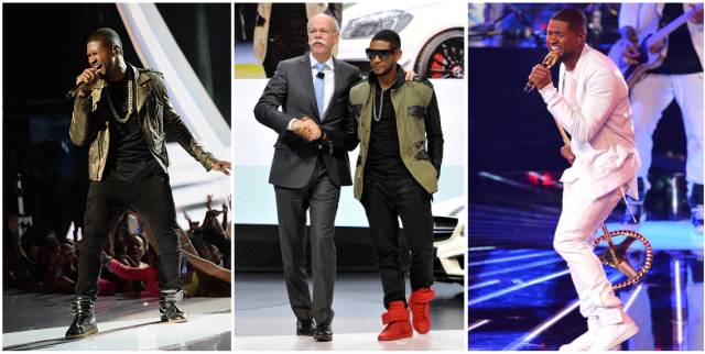 懵?这双长相平平的鞋子为何会到这前十来?先别急,你看一眼usher 和kanye west活动和日常照片即可知道这双鞋在海外到底有多火了。