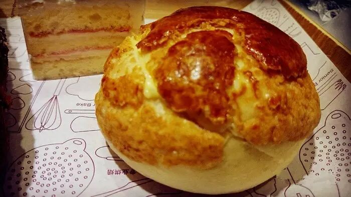 这家还是新开的店呢。装修的特别有80世纪的香港味道。菠萝包算是还不错的。甜度适中,表皮酥香,里面也嫩嫩的,没有面包那种干巴巴,夹着冰冰的芝士,很好次!