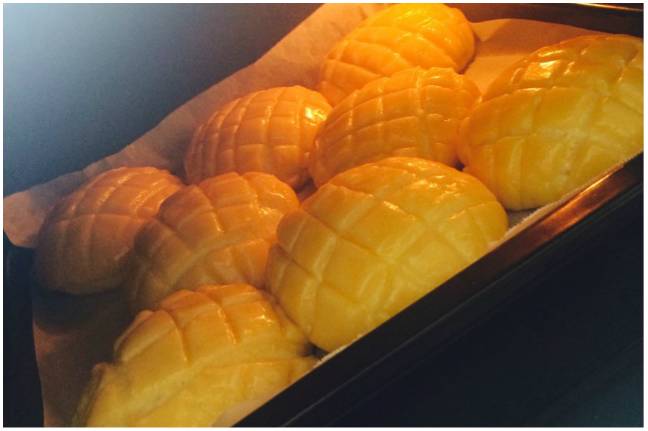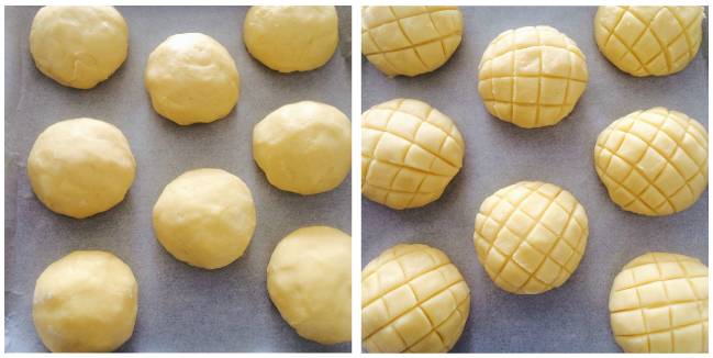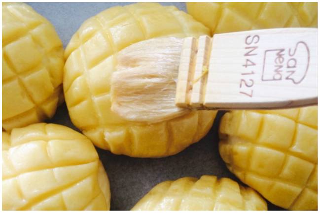 12.依次包好所有,然后在酥皮上划上菠萝格。