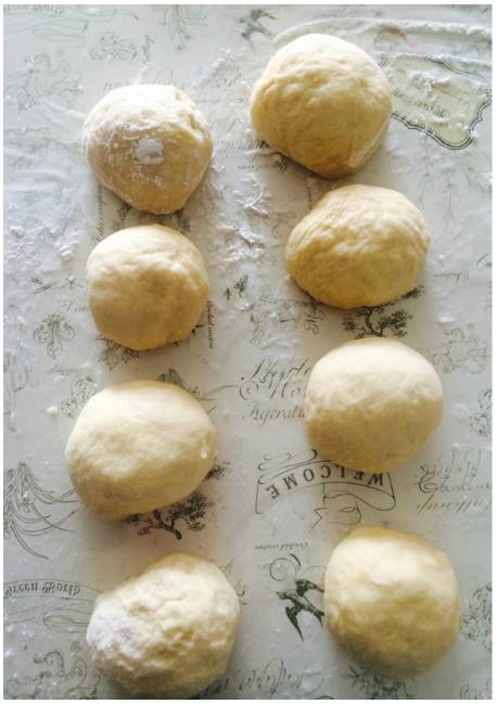 5.发酵好的面团排气后分成8等份,团成小面团,盖上纱布醒发15分钟。