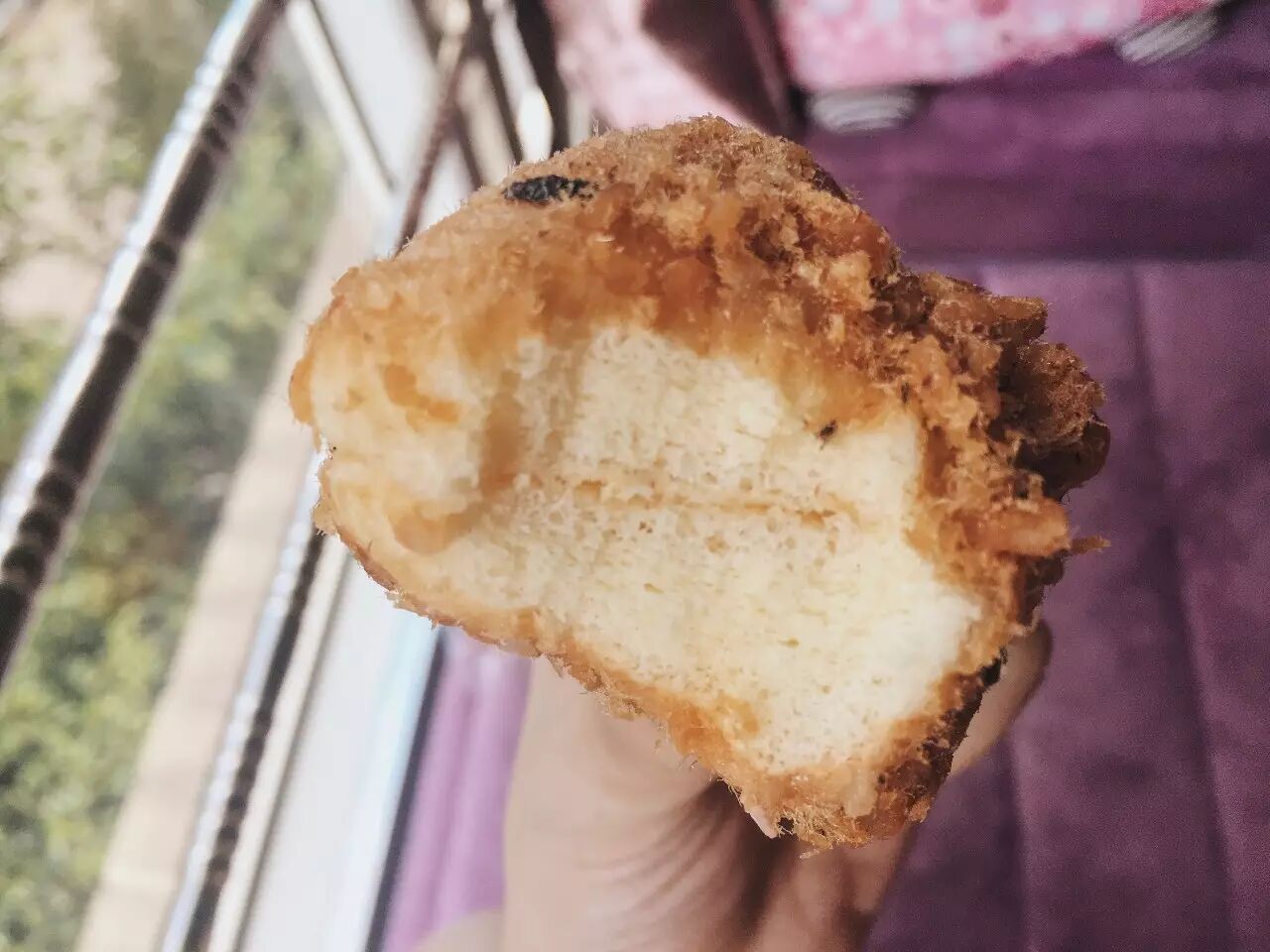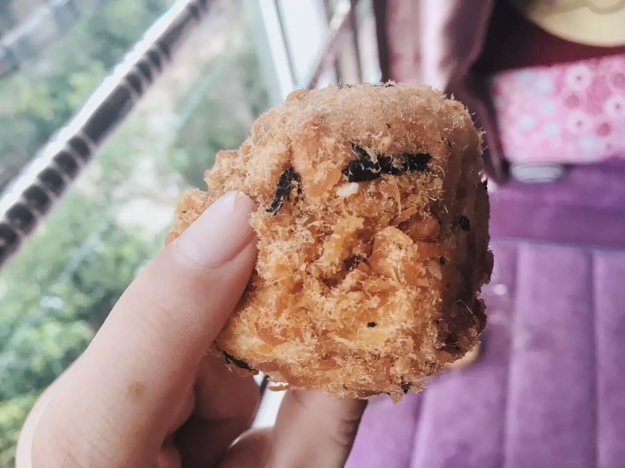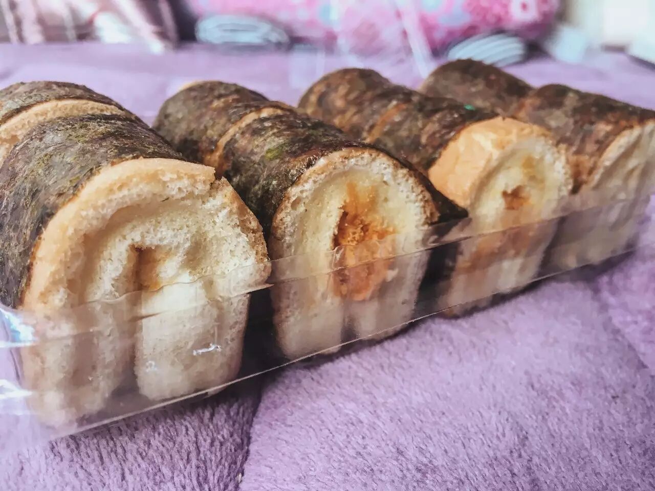 由于被紫菜包裹,它入口时的味道带着淡淡的海腥味,但随即就被另一种咸香味取代了,蛋糕里面还夹着少许的肉松和沙拉酱,混合着松软的蛋糕一起吃可以产生平凡却让人回味的滋味。