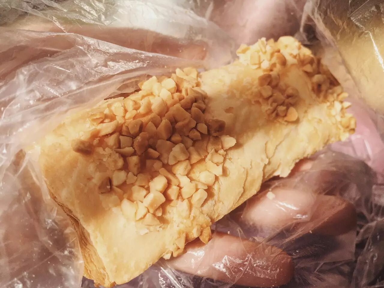 这款千层酥非常的香脆,是咬一口就能感受到薄薄的脆皮层层叠叠在一起的口感,味道上有着浓淡相宜的鸡蛋香,最上面的花生碎米又给它整体的味道增添了许多香气。