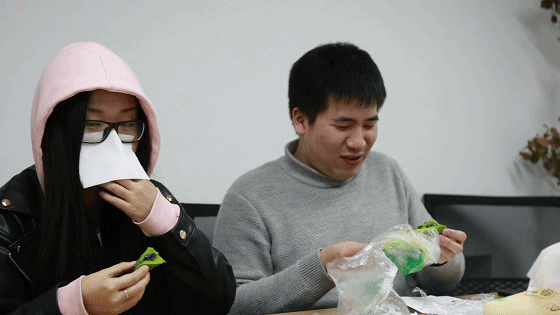 一块同学说:豆沙馅皮和馅混在一起,中间的馅感觉有点怪,好像是鸡蛋味,不太好吃。