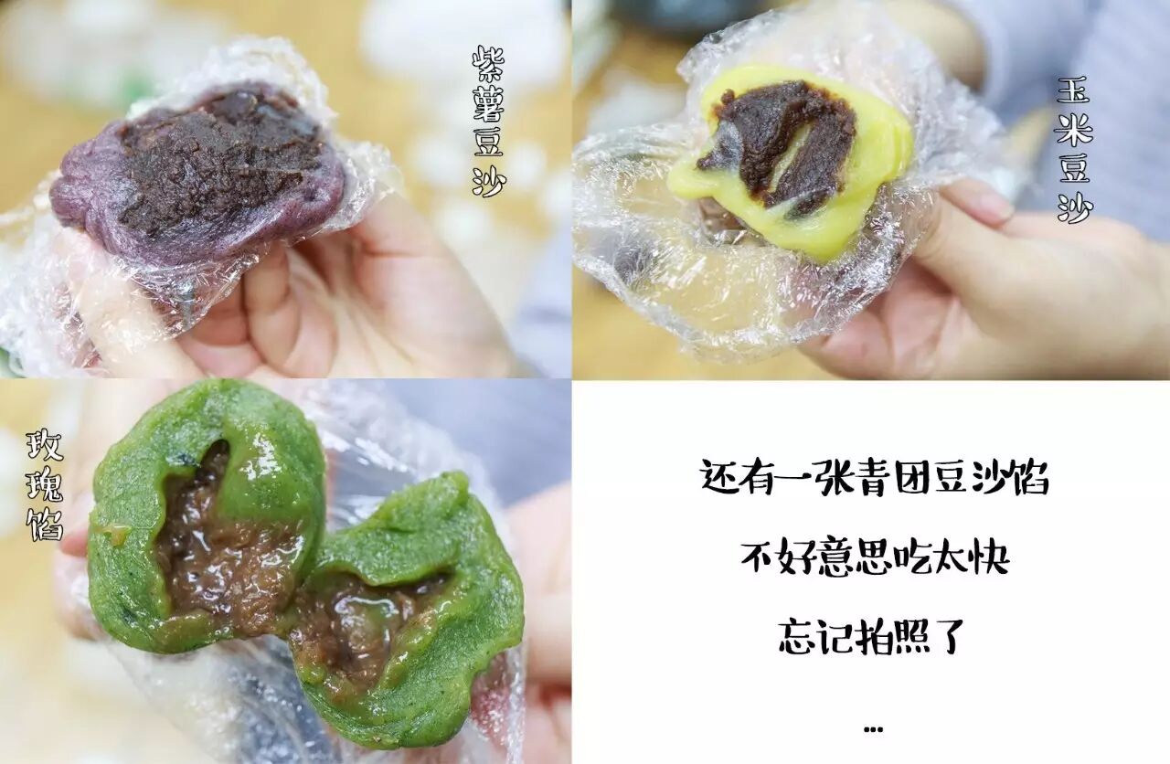 还有紫薯豆沙、玉米豆沙这种紫团和黄团