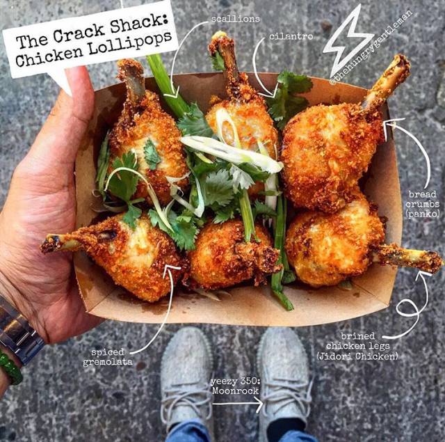 来看看,他都用哪些鞋子搭配美食的。