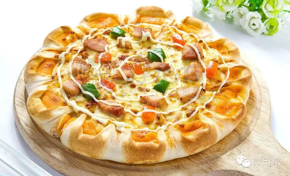 鸡肉卷边芝心披萨——鲜香鸡肉与蛋黄酱,美味口中尽享。