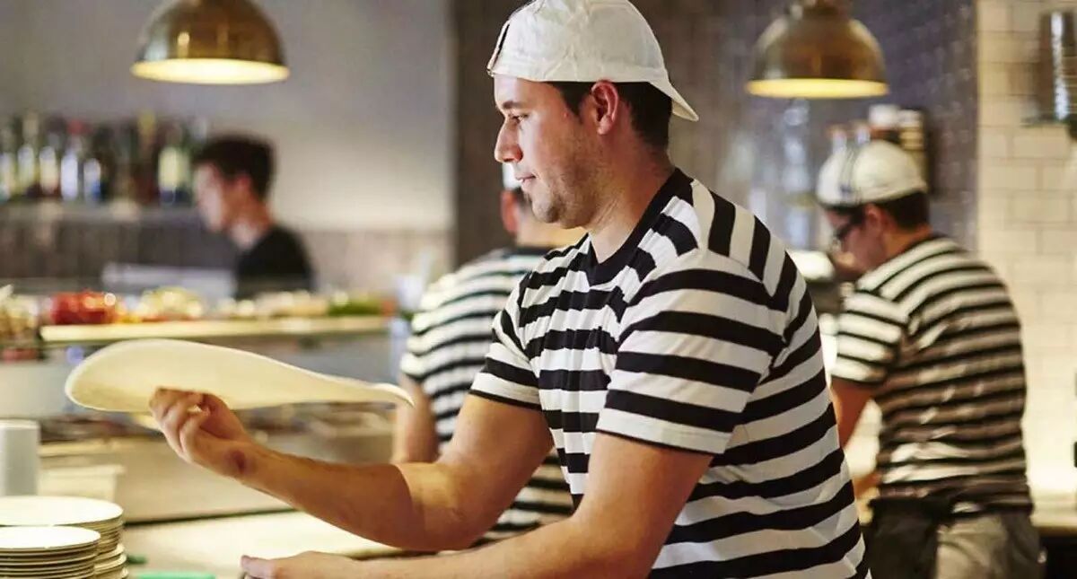 在PizzaExpress,披萨是绝对重要的角色,披萨师经过长达12周的严格训练,学习如何揉捏拉伸面团,才能穿着上黑白条纹(现在是蓝白条纹)相间的制服,配合专业的抛扔技术,让面团均匀、保证口感完美。糅合了秘制面团、独家番茄酱、又薄又脆的罗马饼底风格等几大元素,一张完美的披萨成了我们的心血之作。
