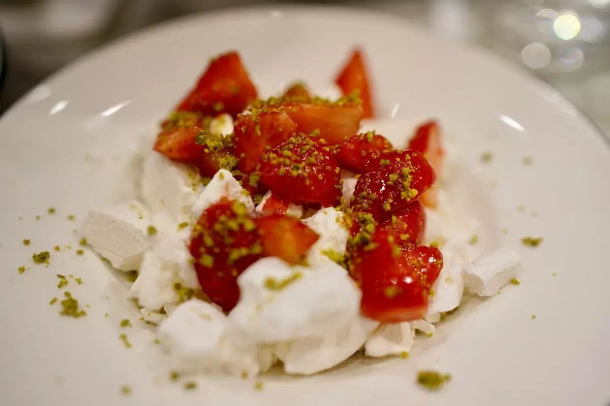 最后以一道名叫“伊顿甜心”的甜品作为结尾真的很棒。新鲜草莓和奶油及糖霜的结合,看着好看,吃起来口感也很不错。味淡淡的也不会让人觉得披萨过后的甜品会很腻。
