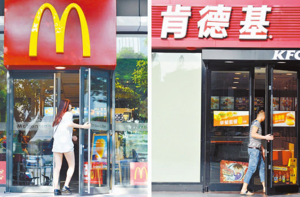 福州市民前往麥當勞、肯德基餐廳用餐。這兩家店的選址一般都很接近。