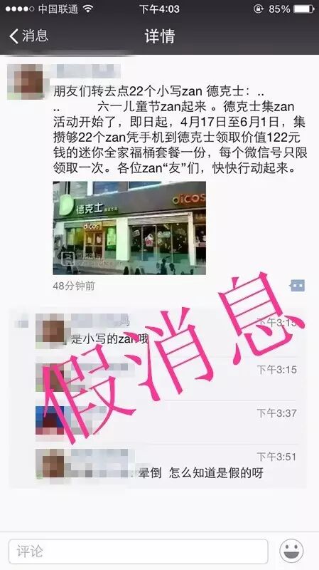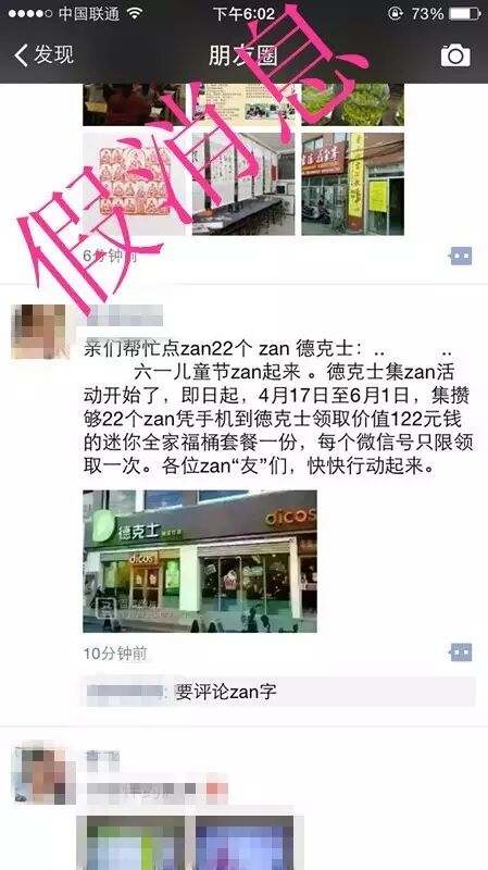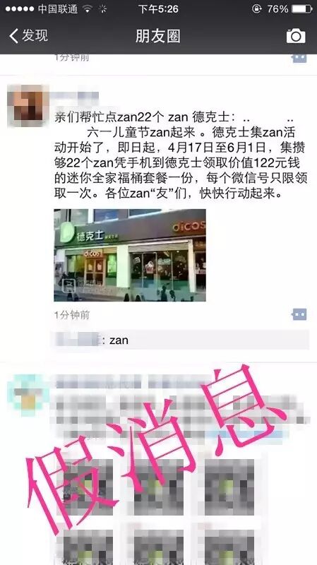今天小编的朋友圈被一条“亲们帮忙点zan22个 zan 德克士:.. .. 六一儿童节zan起来 。徳克士集zan活动开始了,即日起,4月17日至6月1日,集攒够22个zan凭手机到徳克士领取价值122元钱的迷你全家福桶套餐一份,每个微信号只限领取一次。各位zan“友”们,快快行动起来。”的消息刷爆了朋友圈,