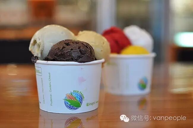 它家另外一大特色在于它们使用的不是华夫卷(waffle cone),而是手工制作的曲奇卷(cookie cone),别有一番风味呢。