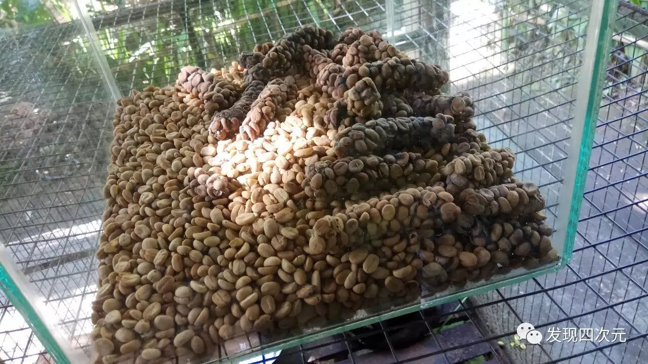 据说麝香猫吃下成熟的咖啡果实后,经过胃的发酵,产出的咖啡别有一番滋味,经过消化系统排出体外后,长这样: