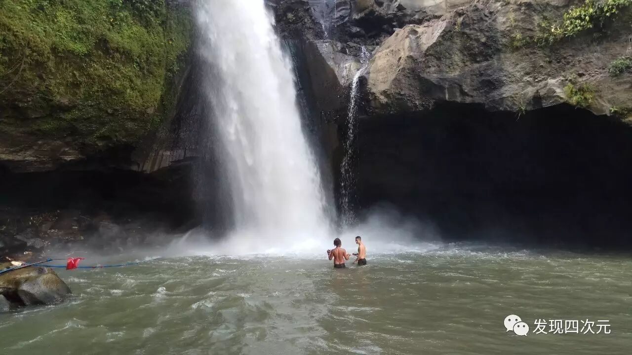 有人直接脱光走到瀑布底下感受飞流直下三千尺: