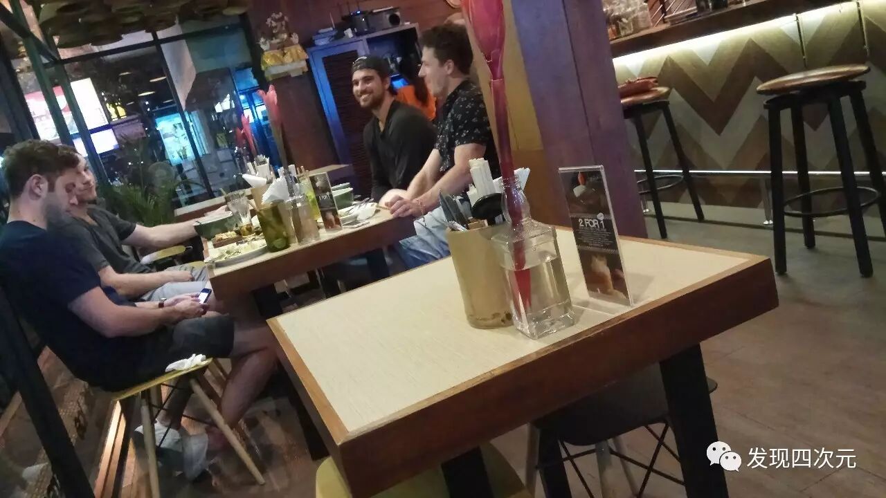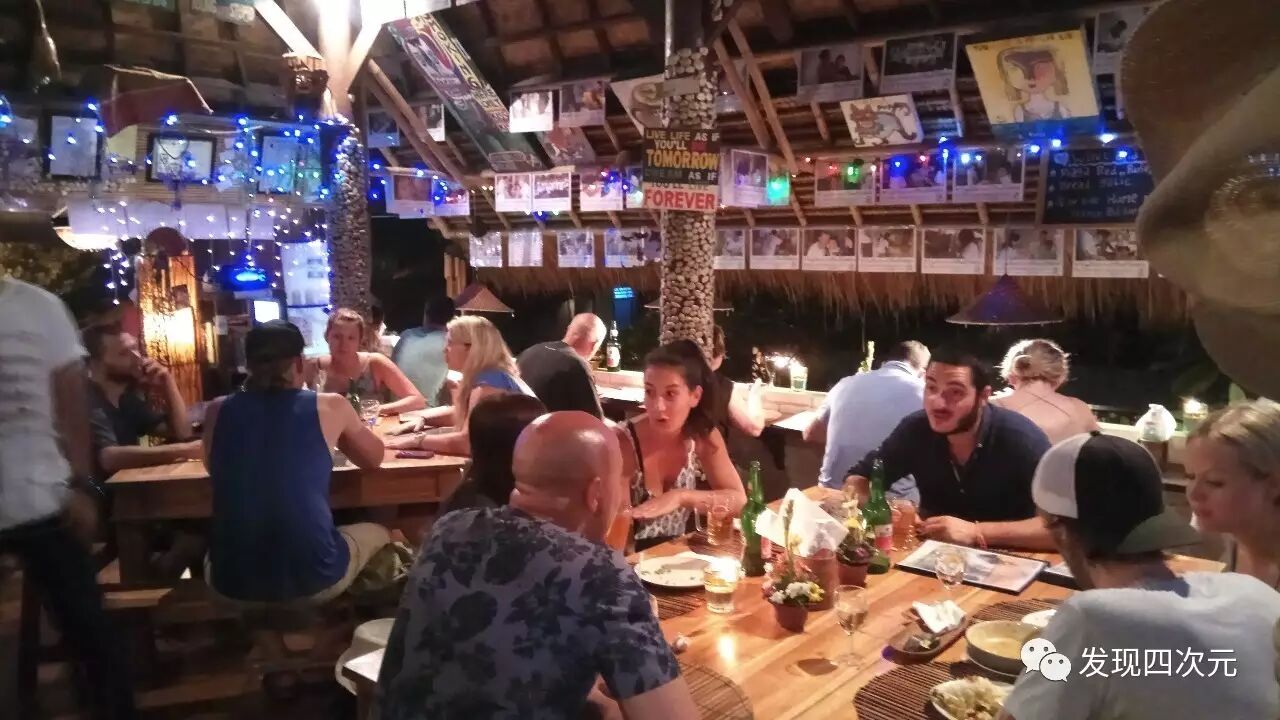 从蓝梦岛回来后,我们在酒店里预约了按摩,然后约了在蓝梦岛认识的一对蜜月夫妇去一间网红酒吧吃晚餐:
