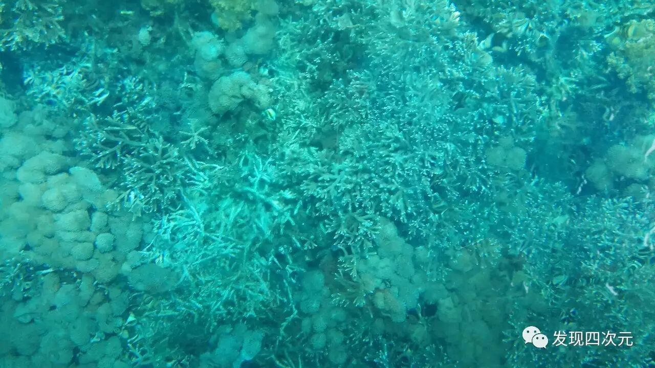 海水清澈见底,肉眼都可以看到各种珊瑚,下面这张照片就是在船上对着海底拍的: