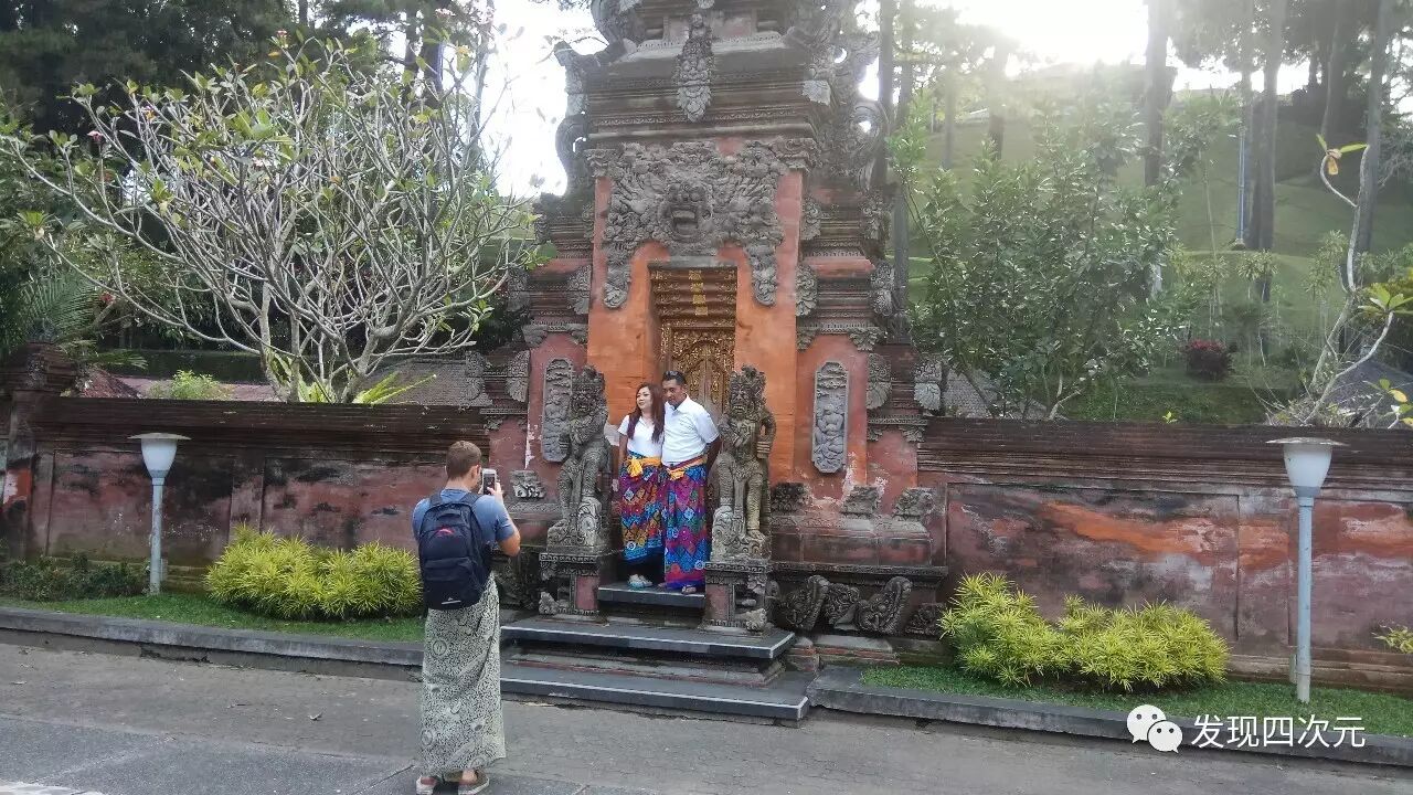 在巴厘岛进寺庙无论男女都要围上像裙子一样的布,出去的时候再自觉退还掉:
