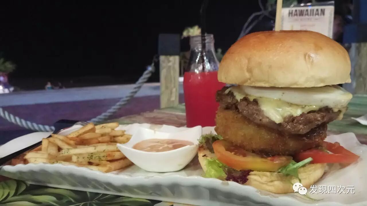 晚上在海边的一个西餐厅,吃了个巨大的汉堡!!!