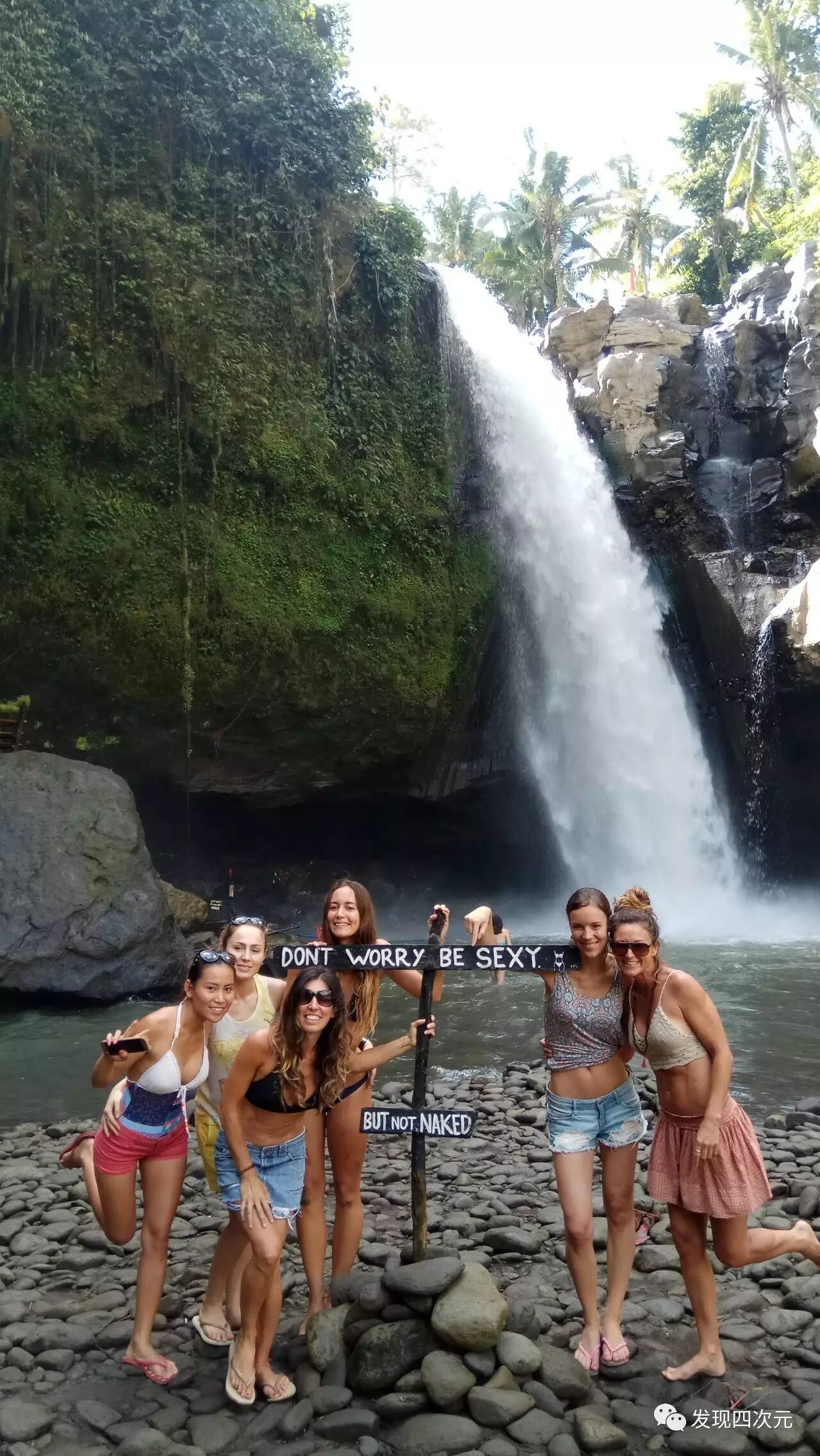 最具亮点的还是瀑布前的这个牌子:DON'T WORRY,BE SEXY,BUT NOT NAKED(别担心,尽情卖弄性感,但别全裸就行):