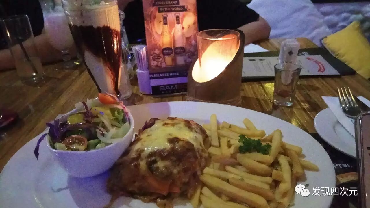 我们去吃的网红酒吧叫BAMBOO,很多人,但味道一般价格偏贵,最不能忍的是千层面里竟然层层都给我夹胡萝卜!!!!!我又不是兔子!!