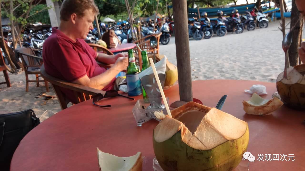 这位白人男子来自阿姆斯特丹(欧洲荷兰首都),10年前跟妻子来巴厘岛旅游,从此爱上了这里,然后两夫妻一起搬过来在这边定居,做起了酒店生意,目前管理好几家酒店,闲的时候他就会来海边看看书,每年圣诞节的时候就会欧洲跟家人团聚。
