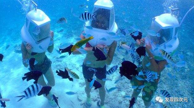 我报名玩的水上活动2小时内可以无限次浮潜,香蕉船,滑梯等等,还包括一次海底漫步,所谓海底漫步就是给你头上戴个大大的氧气罩,然后有教练陪你一起下海走几步,海底各种各样的鱼在你身边游啊游,然后工作人员会给你一点鱼食,你握紧在手中一点点放出来,小鱼儿们就会围在你身边啃你的手~~