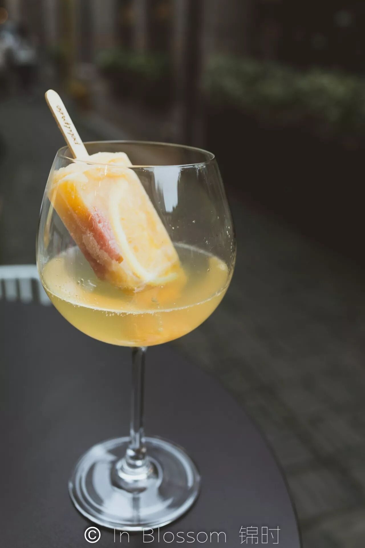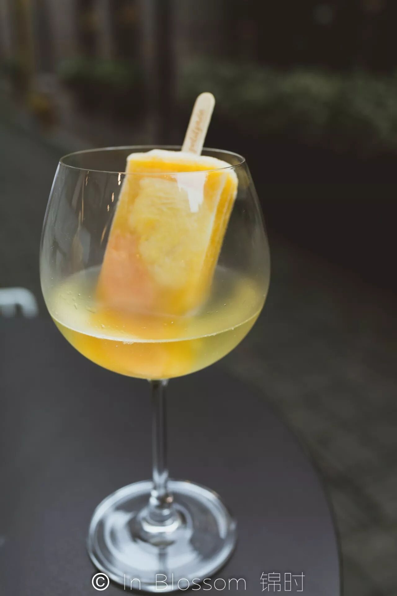 这道甜品是把棒冰放在装着苏打水的杯子里