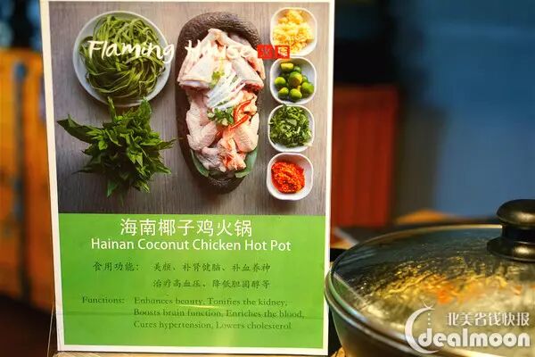 锅底是三颗100%纯椰子做成,老板特地带我去后厨看他们切椰子,配上一些枸杞,少许人参,不掺加一点水或其他辅料的端出来。可以说是湾区找不到第二家汤底是这么纯正的。半只鸡不带偷工减料的 。
