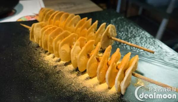 龙卷风薯片以为会是类似国内孜然辣椒的烧烤味,但是上面撒的其实是芝士粉。口感和期待中一样非常的酥脆。虽然是在中国街头非常常见的小吃,但是如果是带美国朋友来,应该是会让他们觉得很酷炫的。