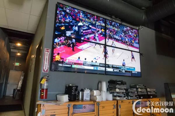 环顾四周,超大的电视里正播放着某场篮球比赛,据说前段时间NBA季后赛时,店里是座无虚席,为了满足一众湾区球迷,店里还供应饮料、啤酒和各类手指小食,比如龙卷风薯片、芝士火辣鸡、酥炸鱿鱼圈、软炸QQ虾、火焰青口。边看比赛边和小伙伴杯盘交错,真是再快乐不过的事儿了。