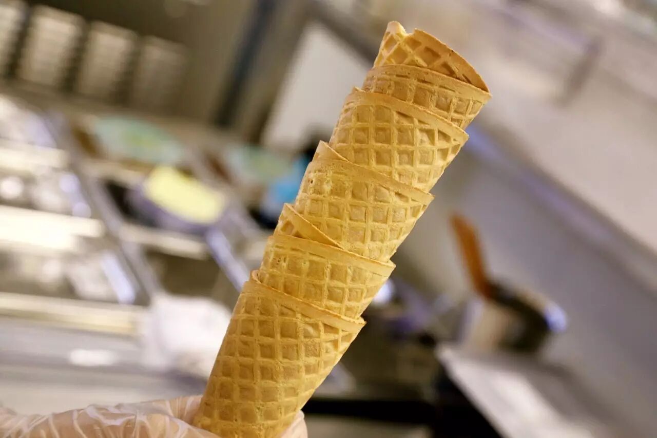 冰淇淋底有牛奶、巧克力、焦糖三种味道,
