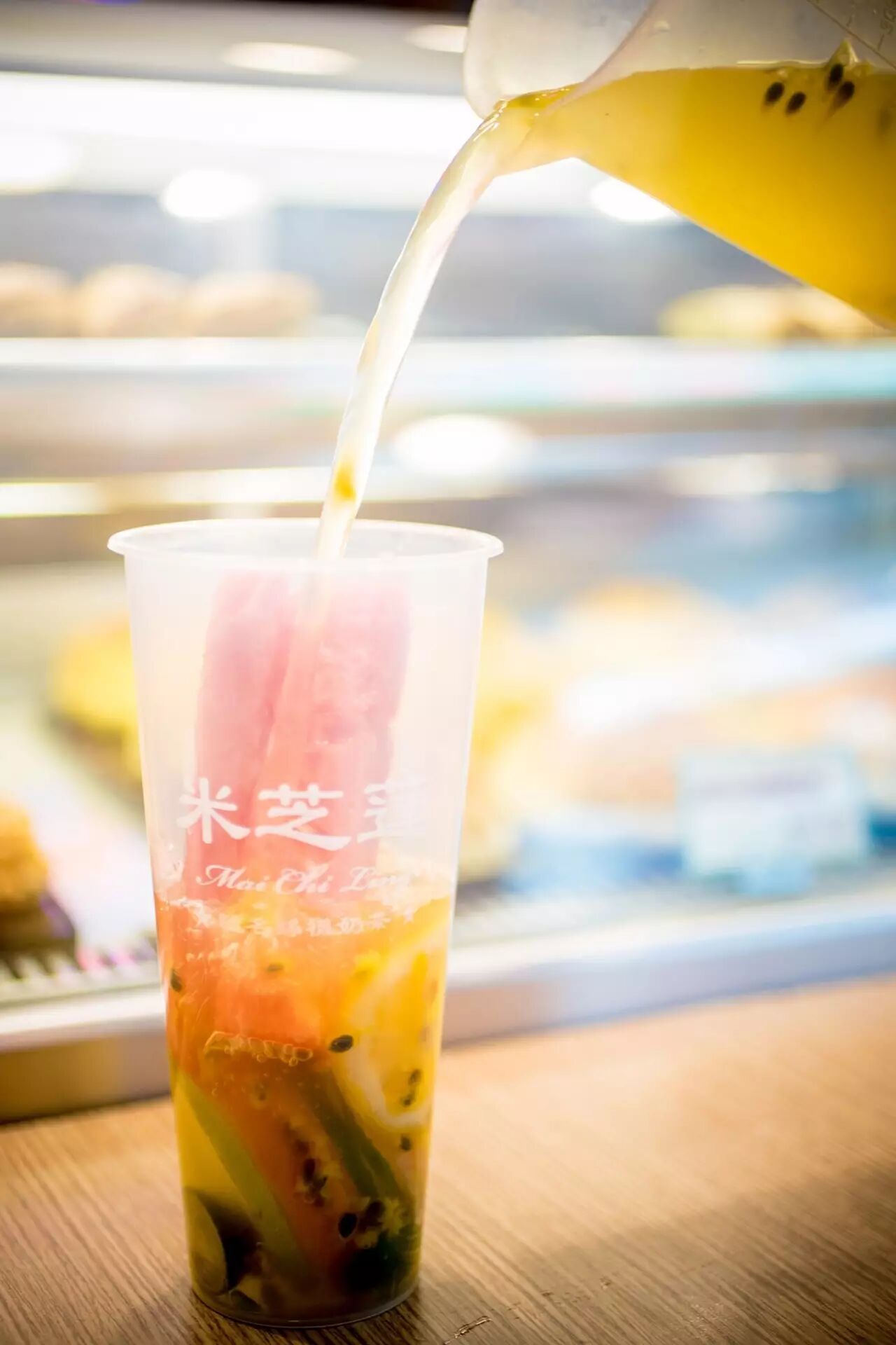 店内的水果都超级新鲜,全都是现点现切,用料也是超级足!每天都要消耗60斤芒果以上,毕竟奶盖和甜品中都要用到芒果果肉,心疼切芒果的小哥3秒钟。