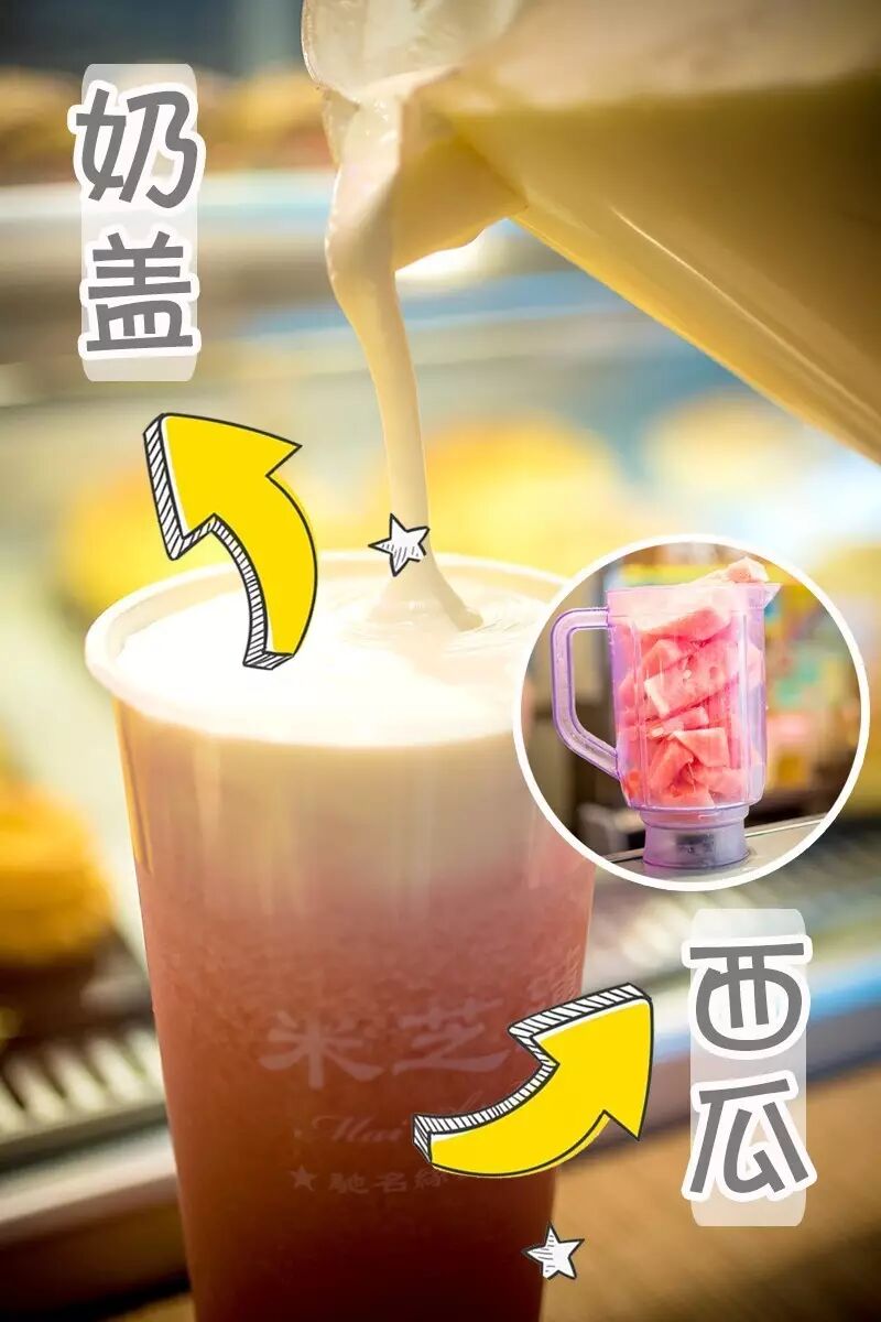 霸王西瓜芝士芝士作为“少女心收割机”不是没有道理的,每杯饮品都是拍照利器。