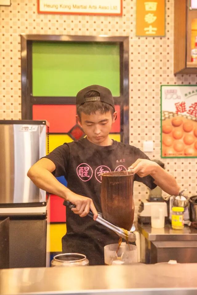 焗茶后通过师傅的反复撞茶拉茶,再煮,这茶才会“滑”,在混合荷兰的黑白淡奶才会有了奶香醇厚的口感。