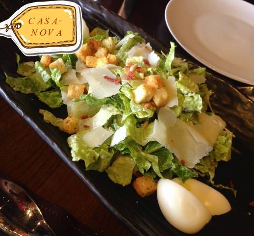 凯撒沙拉,自制的酱汁很给力,沙拉里面还加了松子粒,满口香!